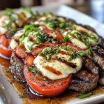 Juicy grilled steak topped with creamy mozzarella, sweet tomatoes, fresh basil, and a rich balsamic reduction — a bold, elegant, and easy dinner!